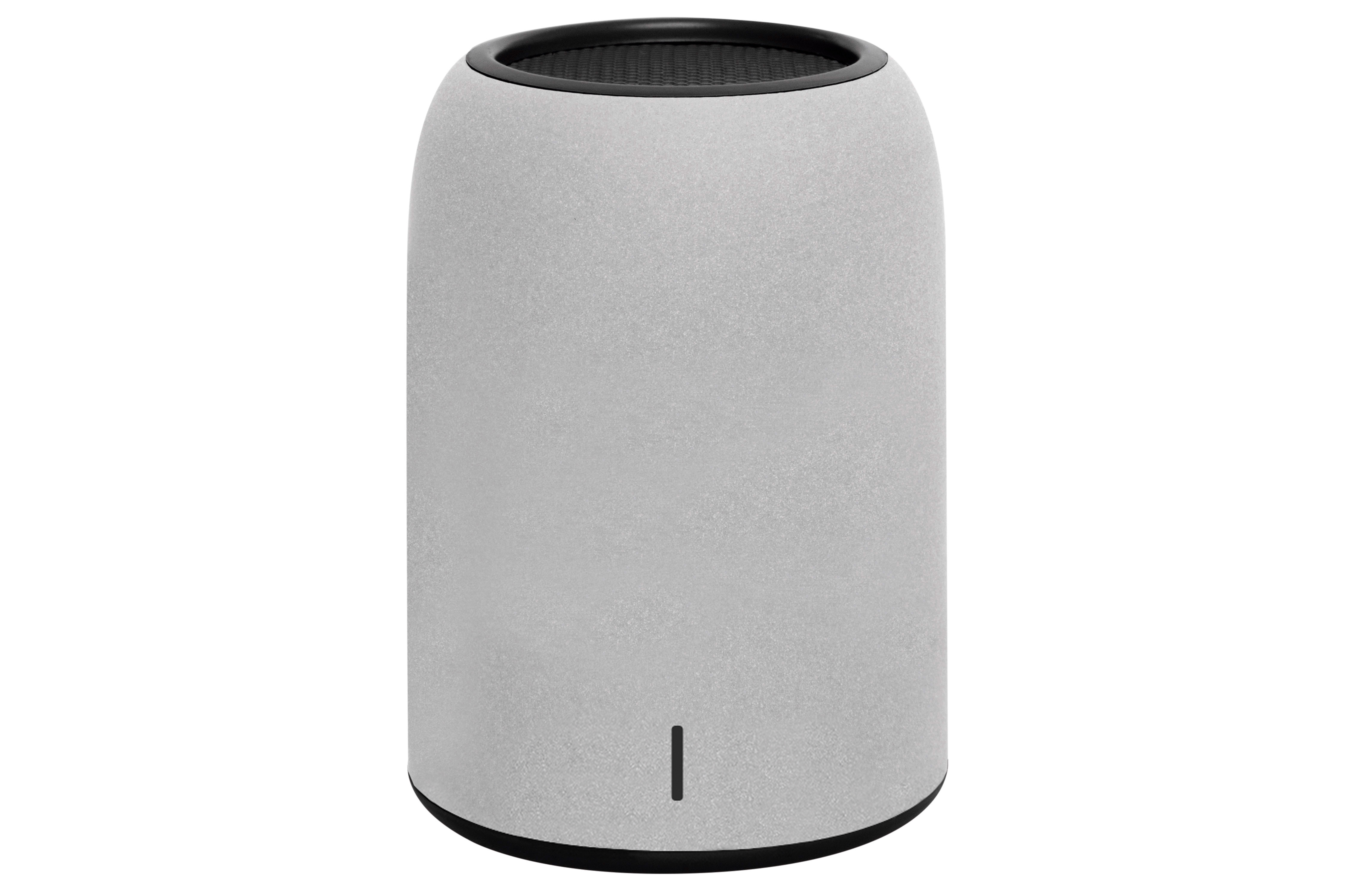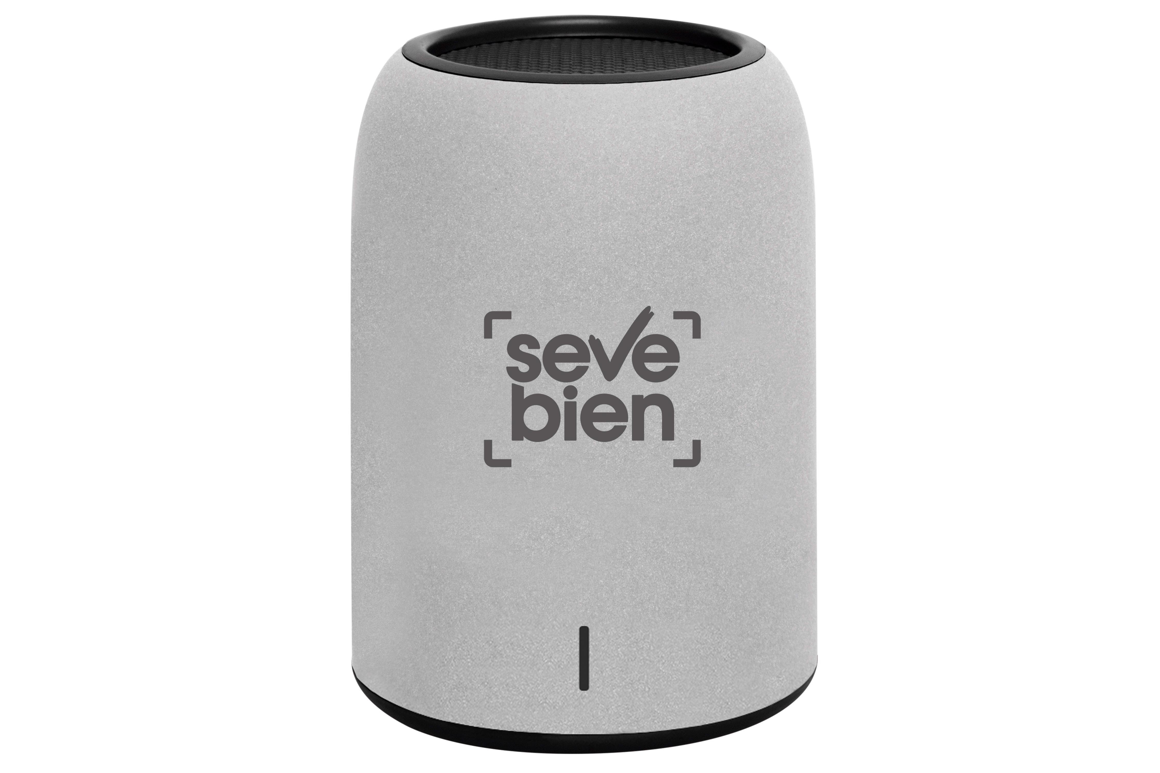 Ø 4,5 x 7 cm. (aprox). Plástico engomado. Mini bocina bluetooth. En la base: goma antideslizante, interruptor de encendido y apagado, botón de reproducción/pausa, respuesta y finalización de llamada. Luz led que indica carga. Micrófono que permite responder llamadas. Entrada para audífonos y puerto USB para su carga. Estuche con cierre, en su interior un pequeño bolsillo de red. Incluye cable de carga USB y de audio. Presentación en caja de regalo. Con certificación de calidad.